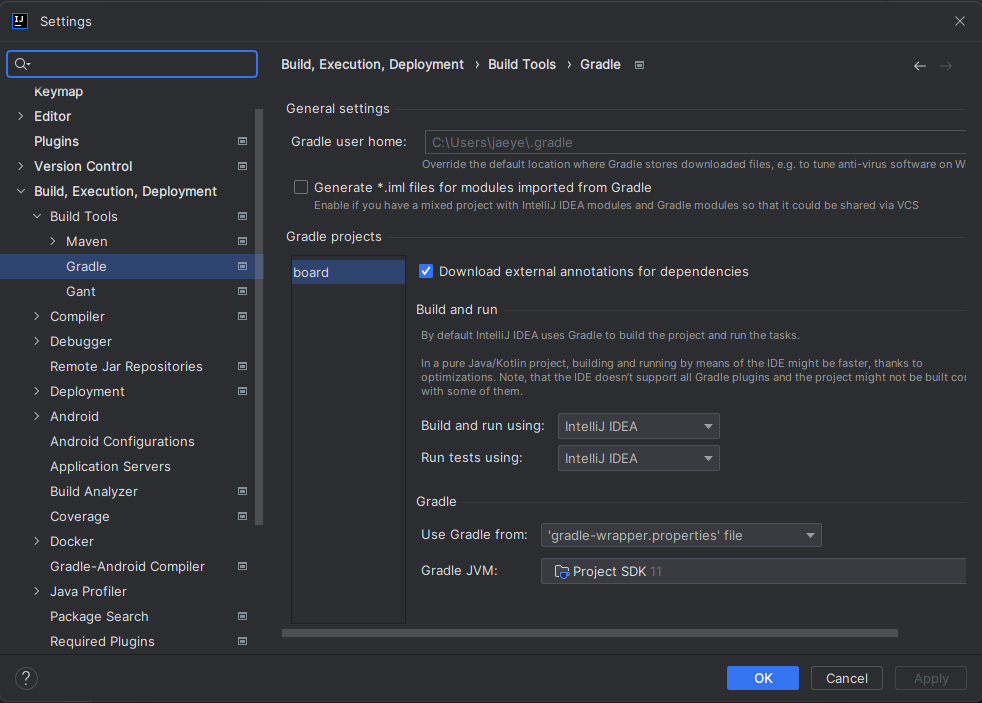 - 조금이나마 빠른 빌드를 위해 Gradle 설정도 바꿔줍니다.