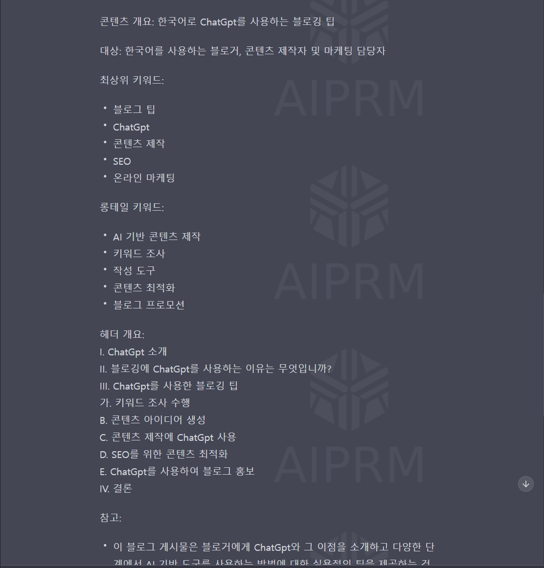 그러면 다음과 같이 블로그 작성 관련 팁에 대한 블로그를 작성해 줍니다.