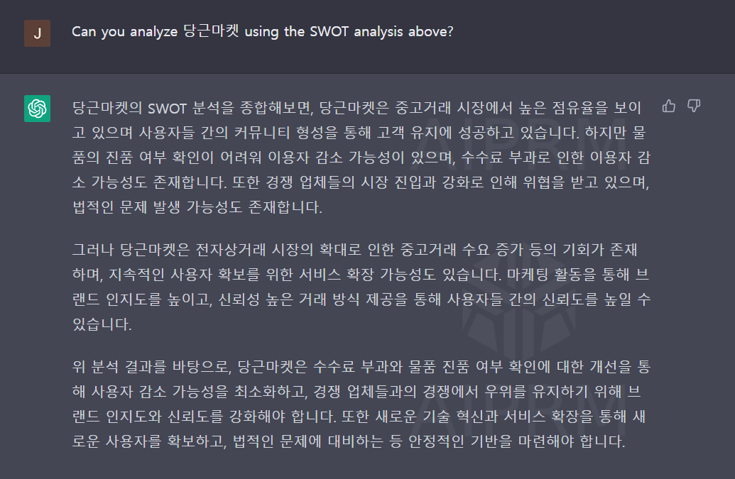 | ChatGPT 활용 - 사업 계획서 - SWOT 분석2 - AIPRM 활용 (0) | 2023.03.06 |