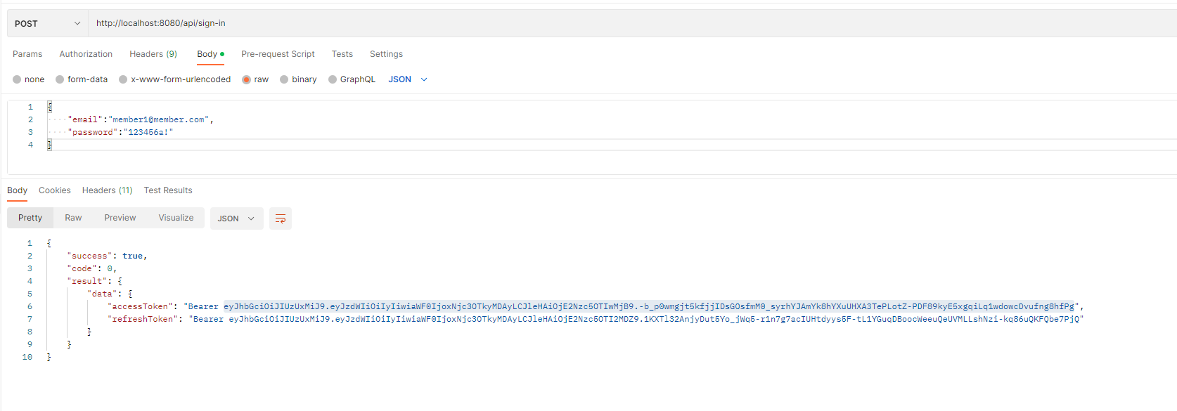 먼저 로그인을 통해 access token을 발급받습니다.